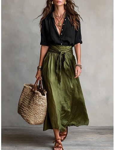 Naisten Hame setit Pitkähihainen Paitapuserokaula-aukko Yhtenäinen väri Muoti Katutyyli Kausaliteetti Päivittäin ulko- Musta Ruskea Apila Kesä Normaali