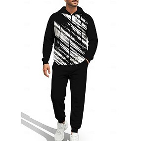 Miesten Huppari Verryttelypuku Vetoketjullinen huppari Kurenauha Taskut Geometrinen Housut Huppari College-pusero Syksy Musta / Valkoinen Kuntosaliharjoitus Rento Koripallo Roikkuva Pitkähihainen