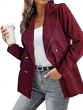 Naisten Bleiseri Pidä lämpimänä Mukava Tasku Napit Vapaa-aika Tavallinen Loma Katu Kausaliteetti Arki-asut Normaali Sänkyjen avaus Normaali Pitkähihainen Päällysvaatteet Musta Rubiini Tumman vihreä