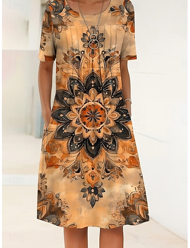Naisten Maksimekko Boho-mekko Väljä mekko Kesämekko Rantamekko Böömi Loma Etninen Hiekkaranta Pyhäpäivä Deitti Normaali Kuvitettu Abstrakti 3/4 hiha V kaula-aukko Oranssi Kesä Kevät