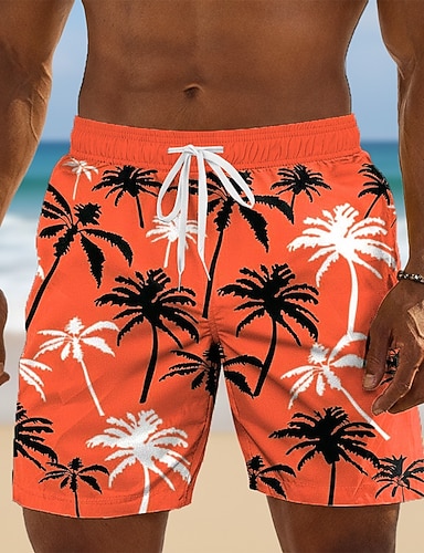 Miesten Kookospuu Kaltevuusväri Trooppiset kasvit Uimahousut Uimapuvut Uimahousut Surffishortsit Keskivyötärö Havaijilainen ulko- Loma Arkikäyttö Sivutaskut Verkkovuori Joustava kiristysnyöri