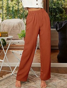 Naisten Keinopuuvillainen pellava Kiinalainen Kesähousut Suora Perus Vapaa-aika Täyspitkä Korka vyötärö Tavallinen Tasku Elastinen vyötärönauha Mukava Mukavuus Pehmeä Mikrojoustava Päivittäin ulko