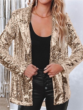 Naisten Paidan takki Bleiseri Mukava Hengittävä Paljetti Muoti Päivittäin Tavallinen ulko- Kausaliteetti Päivittäin Normaali Kauluskäänne Normaali Pitkähihainen Päällysvaatteet Hopea Musta Viini