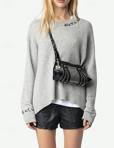 Naisten Neulos Pusero Katutyyli Vapaa-aika Kirjain Tiukka pyöreä kaula-aukko Kirjailtu Kudottu Pitkähihainen Tavalliset topit Neuloa Päivittäin Bile Viikonloppu Harmaa Syksy Talvi