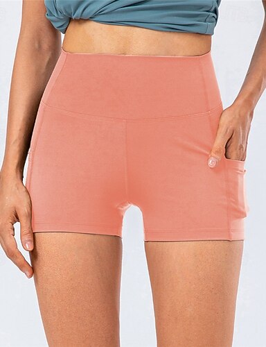 Naisten Urheilushortsit Joogasortsit Harjoitteluhousut puhelimen taskulla Korka vyötärö Pilates Kuntosaliharjoitus Treenata Shortsit Yhtenäinen väri Musta Valkoinen Keltainen Urheilu Urheiluvaatteet