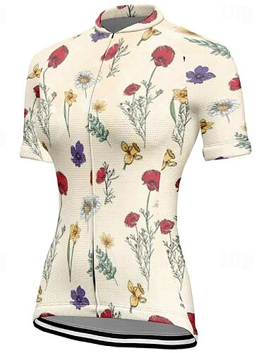 Naisten Pyöräily jersey Kukka Lyhythihainen Pyörä Tee paita Topit 3 takataskulla Maastopyöräily Maantiepyöräily Nopea kuivuminen Etuvetoketju Kosteutta siirtävä Urheilu Khaki Kahvi Vaatetus