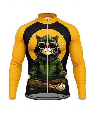 Miesten Yläosat Pyöräily jersey Eläin Kissa Pitkähihainen Pyörä Villapusero Topit 3 takataskulla Aurinkovoiteet Aurinkovoide Nopea kuivuminen Heijastinraidat Urheilu Musta Vaaleanpunainen