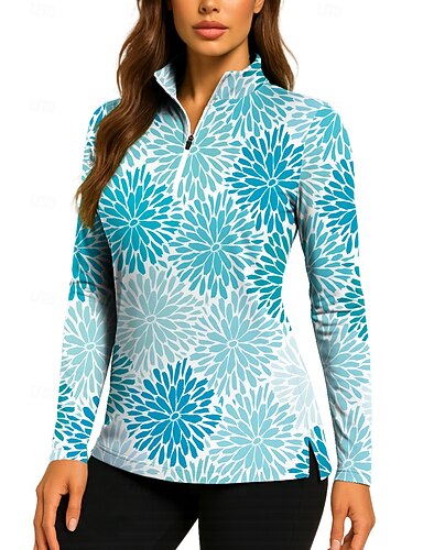 Naisten Kukat Yläosat Pusero Urheilupaita Poolopaita Pitkähihainen Vetoketju Kukka-aihe UPF50+ UV-vastustuskykyinen Erittäin elastinen Kosteuden siirtävä Hengittävä Lentopallo Tennis Golf poolokaulus