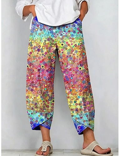 Naisten Leveä reisi Kiinalainen Housut 3/4-pituiset housut Loma Vintage Perus Täyspitkä Korka vyötärö Kukka Kuvitettu Abstrakti Elastinen vyötärönauha Painettu Mukava Mukavuus Hengitettävyys