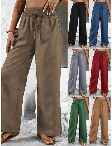 Naisten Leveä reisi Kiinalainen Housut Loma Perus Vapaa-aika Täyspitkä Keski vyötärö Tavallinen Mukavuus Joustamaton Päivittäin Valkoinen Sininen Vihreä Aprikoosi Kesä Kevät Kevät, Syksy, Talvi, Kesä