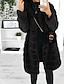 Naisten Sherpa takki Mukava Hengittävä Tasku Napit Vapaa-aika Tavallinen Loma Katu Kausaliteetti Arki-asut Yksirivinen Pitkä Hupullinen Loose Fit Pitkähihainen Päällysvaatteet Musta Punastuvan