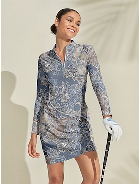 Naisten Poolopaita Järven sininen Valkoinen Pinkki Pitkähihainen Aurinkovoide Topit Paisley-kuvio Syksy Talvi Naisten Golfasut Vaatteet Asut Vaatteet