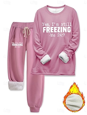 Naisten yöpukusetti fleece-vuorattu elegantti lämmin muoti kahden osan setti urheiluvaatetus housusetti pitkät hihattomat crew kaula graafinen kirjain tulostus ulkoilma loma päivittäin
