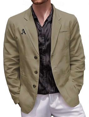 miesten logokuvioinen puuvillapuku takki puvut takki bleiseri rento ulkoilu arkikäyttöön pitkähihainen lovi kaulus ulkovaate taskut napitettava raidallinen vuorattu takki syksy talvi musta khaki