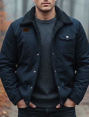 miesten kompassiprintti kirjailtu fleecetakki sherpa kuorma-auto takki työ rahtitakki alas laskettava kaulus lämmin talvipuuvillatakki vintage rento ulkotakki useat taskut