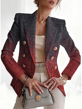 Naisten Bleiseri Mukava Hengittävä Napit Painettu Muoti Vapaa-aika Geometrinen Toimisto Katu Kausaliteetti Arki-asut Kaksirivinen Normaali Lovikäänne Normaali Pitkähihainen Päällysvaatteet Rubiini