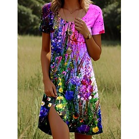 Pääsiäisen naisten mini mekko A-linjainen mekko rento mekko T-paitamekko tee mekko kesämekko tyylikäs rento loma rento päivittäinen säännöllinen istuvuus kukkagraafinen lyhyt hiha pyöreä kaula-aukko