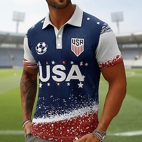 Jalkapallomestaruuskilpailut 2026 Miesten Yhdysvaltain Yhdysvaltain lippu Poolopaidat Lyhythihainen Poolopaidat Kauluspaidat Vapaa-aika Urheilu- ja treenivaatteet 3D-tulostus Napit Kevät kesä