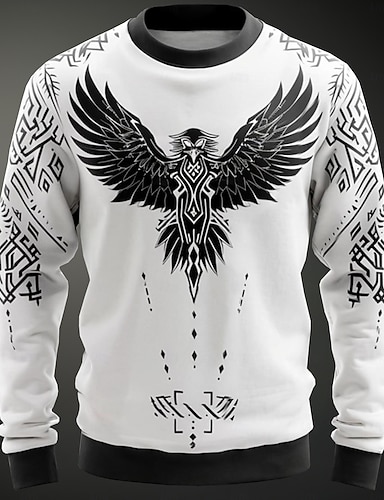 Miesten Goottilainen kauhu Kotka College College Pitkähihainen Villapaita Tiukka pyöreä kaula-aukko Muoti Tyylikäs Katutyyli 3D-tulostus Urheilu ja ulkoilu Pyhäpäivä Crewneck Talvi 봄 & Syksy
