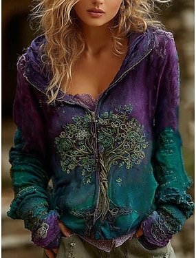 Naisten 3D-tulostus Vintage Boho Huppari Patchwork Huppari Collegepaita Kirkas Vetoketjullinen Floral Punk Aktiivinen Vintage Pitkähiha Huoodattu Koti Päivittäinen Pukeutuminen Rentoutumis Patchwork
