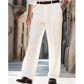 Miesten Housut Puvunhousut Roikkuvat housut Vohveli housut Tasku Leveä reisi Tavallinen Hengittävä Täyspitkä Muodollinen Juhla liiketoiminta Loma Muoti Musta Valkoinen Joustamaton