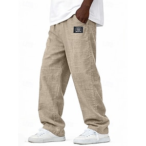 Miesten Pellavahousut Housut Rennot housut Kesähousut Kurenauha Joustava vyötärö Tavallinen Mukavuus Hengittävä Täyspitkä Kausaliteetti Päivittäin ulko- Loma Muoti Sininen Musta Joustamaton