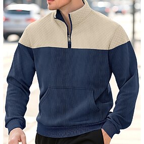 Miesten College Quarter vetoketjullinen collegepaita Musta Ruskea Harmaa Puolivetoketju Väripalikka Joustin Textured Neulos-tekstuuri Päivittäin Urheilu ja ulkoilu Pyhäpäivä Polyesteri Katutyyli