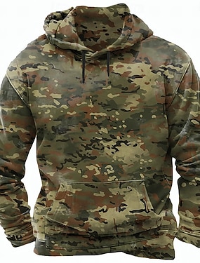 Miesten Huppari Ruskea 2# Ruskea 3# Ruskea Hupullinen Armeijatyyli naamiointi 3D-tulostus Tyylikäs Syksy Talvi Vaatetus Hupparit paidat