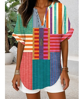 Naisten Boho T-paita Pusero Painettu Kuvitettu Geometrinen Vintage Tyylikäs Klassinen Hihaton Lyhythihainen V kaula-aukko Tavalliset topit Päivittäin Sininen Keltainen Rubiini Purppura Apila Kes