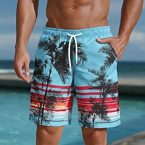 Miesten Kookospuu Auringonlasku Meren aallot Uimahousut Uimapuvut Uimahousut Surffishortsit Keskivyötärö Havaijilainen Rantaloma Sivutaskut Verkkovuori Joustava kiristysnyöri vyötäröllä Suunnittelija