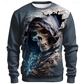 Miesten Viikatemies 3D College Punk Juhla Goottityyli Pitkähihainen Tiukka pyöreä kaula-aukko Loma Sininen Purppura Oranssi Crewneck 3D Kaikki vuodenajat Suunnittelija S M L XL XXL XXXL