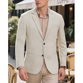 Miesten Blazer-takki Pellava bleiseri Lovikaulus Muoti Kevyt Retro / vintage Yhtenäinen Pellava bleiseri Musta Valkoinen Harmaa Räätälöity istuvuus Yksirivinen yksi nappi
