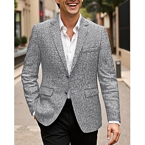 Miesten Tweed bleiseri Lovikaulus Muoti Klassinen Vapaa-aika Yhtenäinen Blazer Musta Ruskea Harmaa Normaali istuvuus Yksiriviset kaksinappia