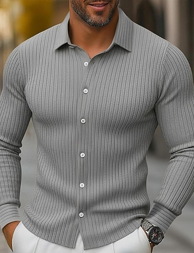 Miesten Paita Ribattu neulottu Rento paita Band kauluspaita Button Up paita Valkoinen Laivaston sininen Harmaa Vaalean sininen Pitkähihainen Tavallinen Kaulus Kausaliteetti Päivittäin Vaatetus Muoti