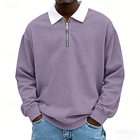Miesten Vohveli poolopaidat Textured Kausaliteetti ulko- Vetoketju Neljänneksen postinumero Pitkähihainen Muoti Moderni Yhtenäinen väri Pintakäsitelty Kudottu 봄 & Syksy Kaikki vuodenajat rennosti