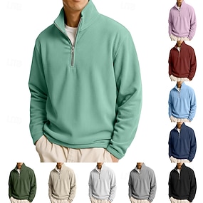 Miesten Vohveli poolopaidat Zip Polo Urheilu ja ulkoilu Kausaliteetti Pystykaulus Neljänneksen postinumero Pitkähihainen Muoti Moderni Yhtenäinen väri Kudottu Syksy 봄 & Syksy Normaali Sininen Musta