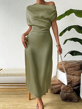 Naisten Midimekko Satiini mekko Juhlamekko Coctail-asu Tyylikäs Muoti Moderni Iltajuhlat Juhla Erikoistilaisuus Normaali Tavallinen Hihaton Tiukka pyöreä kaula-aukko Musta Pölyinen sininen Apila Kes