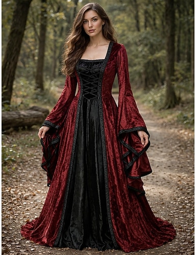 Keskiaika Renessanssi Mekot Hieno puku Pitkähihainen noita Viikinki Naamiaispuku Naisten Kelttiläinen Fantasia Halloween Karnevaali Suoritus LARP Ren Faire Aikuisten Leninki