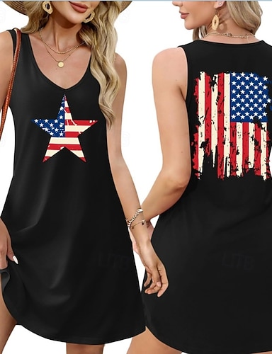 Itsenäisyyspäivä Naisten Mini mekko Rento mekko Slip Mekko Muoti Klassinen Moderni ulko- Loma Bile Normaali Amerikan lippu Hihaton V kaula-aukko Musta Rubiini Kesä Kevät
