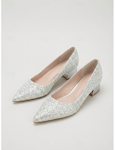 naisten hopeanväriset glitter-korkokengät – kimaltelevat teräväkärkiset cocktail-juhlakengät