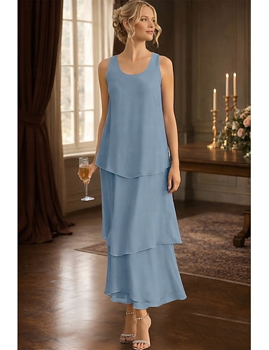 Tuubi Nilkkapituinen Häävieraspuku Muodollinen mekko Kerroksittainen mekko Morsiammen äidin asu Hihaton V kaula-aukko Tyylikäs Yksinkertainen Häävieras Puolivirallinen Sifonki kanssa Tasot Solid Color