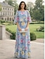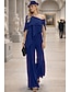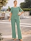 Kaksiosainen Housupuku Kokopitkä Morsiammen äidin asu Lyhythihainen Tiukka pyöreä kaula-aukko Tyylikäs Muodollinen Häävieras Sifonki kanssa Pitsi Kirjonta Laskeutuvat röyhelöt