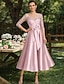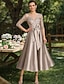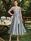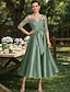 A-linja Polven yli Juhlamekko Coctail-asu Häävieraspuku Morsiammen äidin asu Puolihiha Kauha Tyylikäs Juhla Häävieras Satiini Pitsi kanssa Rusetti(rusetit) Applikaatiot