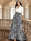 A-linja Kokopitkä Paitamekko Muodollinen mekko Iltapuku Morsiammen äidin asu Pitkähihainen Paitapuserokaula-aukko Tyylikäs Vintage Muodollinen Satiini Jakardi kanssa Rusetti(rusetit) Kukkakuvio