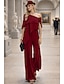 Kaksiosainen Housupuku Nilkkapituinen Morsiammen äidin asu 3/4 hiha Kauha Olkaimeton Tyylikäs Juhla Muodollinen Häävieras Joustava kangas kanssa Nauhat