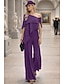 Jumpsuit Housupuku 3 Kappaleen Housupuku Lattian Pituuden Morsiamen Äidin Puku Hiattomat Pitkähiha Jatkohihna Elegantti Vintage Yksinkertainen Virallinen Häätvieras Chiffon pitsi Sekoitus