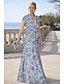 A-linja Mekot Kokopitkä Juhlamekko Coctail-asu Morsiammen äidin asu Puolihiha Venekaula-aukko Tyylikäs Vintage Muodollinen Häävieras Pyhäpäivä Sifonki kanssa Kukkapainatus Röyhelöity Applikaatiot