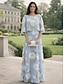 3 -osainen puku Housupuku Kokopitkä Morsiammen äidin asu 3/4 hiha Nelikulmainen kaula-aukko Tyylikäs Yksinkertainen Luksus Muodollinen Häävieras Sifonki kanssa Kirjonta Applikaatiot