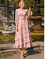 A-linja Mekot Nilkkapituinen Juhlamekko Coctail-asu Morsiammen äidin asu Puolihiha Kauha Tyylikäs Vintage Muodollinen Häävieras Pyhäpäivä Sifonki kanssa Kukkapainatus Röyhelöity Kirjonta