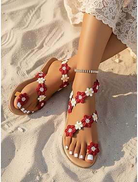 naisten boheemit kukkakuvioiset rantahääsandaalit - tyylikkäät päivänkakkarakoristeet litteät sandaalit häävieraille, mukavat kesäiset morsiusjuhlakengät hiekkarannalle &häämatkakohteet